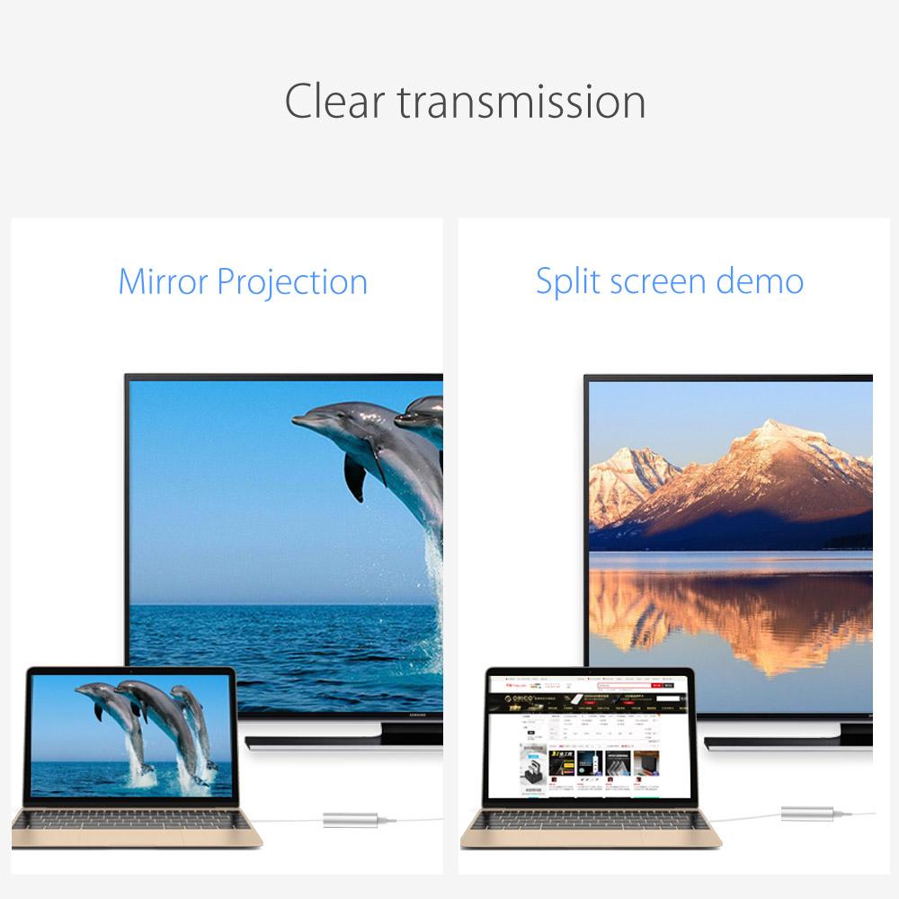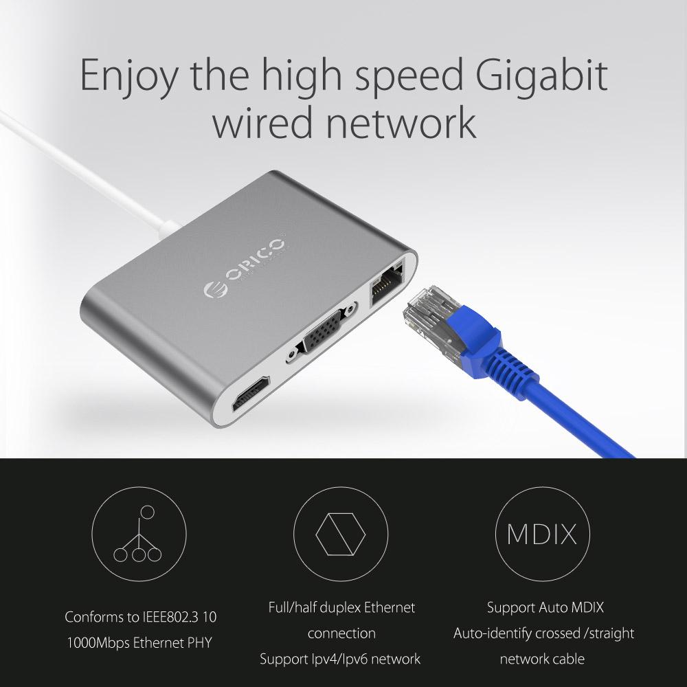ORICO Aluminum Type-C to VGA/HDMI/RJ45/Type-C/Type-A Converter USB3.1 Gen1 with 2 USB3.0 Ports for Mac(RCNB)